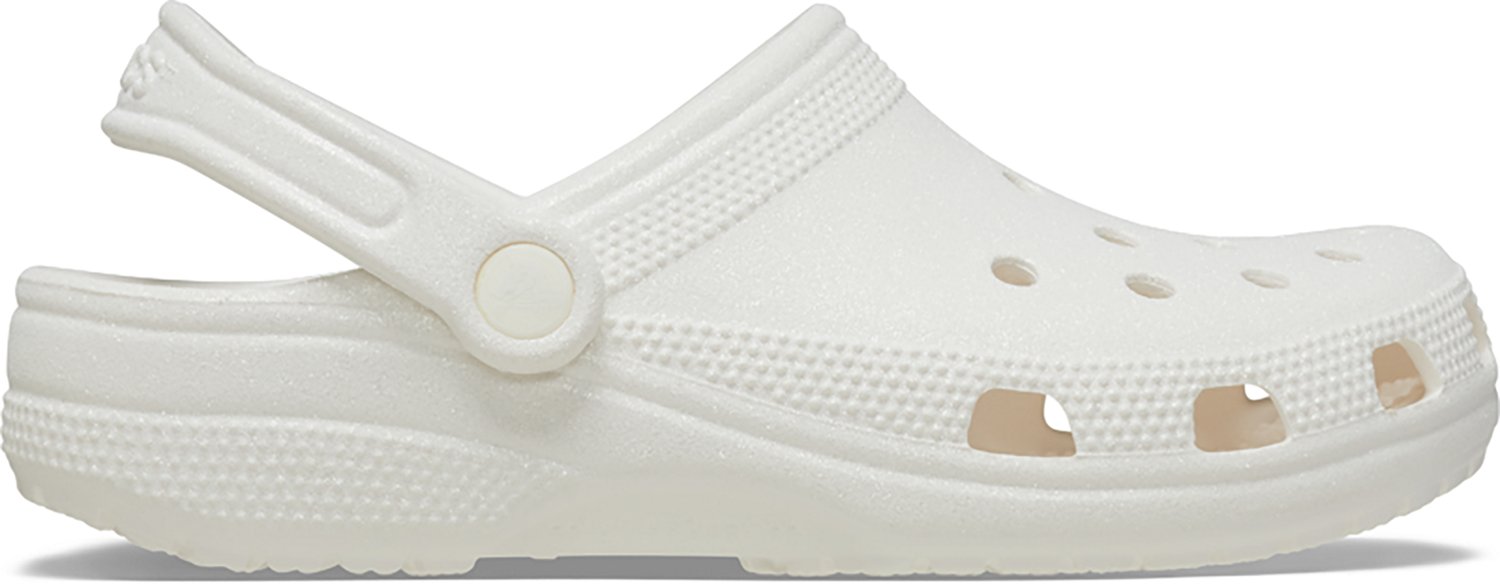 Be comfortable in your shoes with the Crocs Women's Classic Glitter Clog Shoes. These lightweight shoes are cushioned and flexible for all-day comfort and lasting durability. The all-over glitter creates a shiny style that shows off your personality, while the ventilation ports help keep your feet cool and dry.