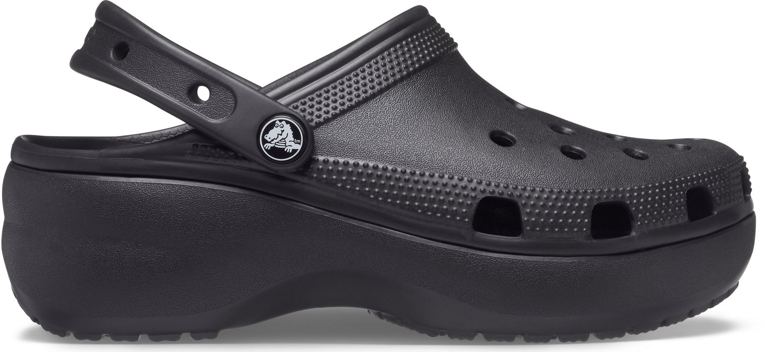 Stay comfortable in style in the Crocs Women's Classic Platform Clogs. These clogs feature Croslite™ uppers and Crocs Comfort™foam cushioning for all-day comfort and durability. The heightened, contoured outsoles provide a slimmer, sleeker look while still providing support.