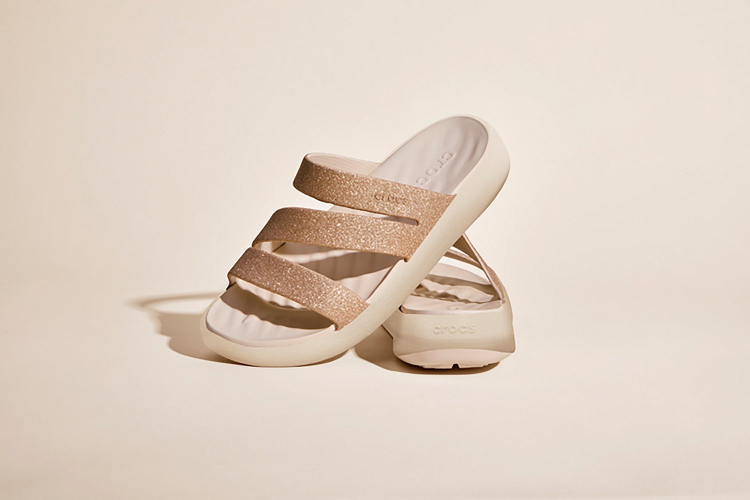 The Crocs Women's Getaway Glitter Strappy Sandal combines style and comfort with its shimmering glitter straps and cushioned Croslite™ foam footbed for all-day wear. Perfect for casual outings or a day at the beach, this sandal offers a lightweight, flexible fit and a secure, adjustable design. With its eye-catching sparkle and versatile look, it’s the perfect combination of fun and functionality for your summer wardrobe.