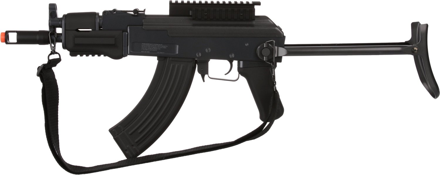 Complete with an adjustable hop-up, the Crosman Game Face GF76 Carbine 6mm Caliber Airsoft Rifle is ready to fire up to 700 rounds per minute. It's electrically powered with a battery and charger included. It also features a collapsible stock and a Picatinny mounting rail for accessorizing.