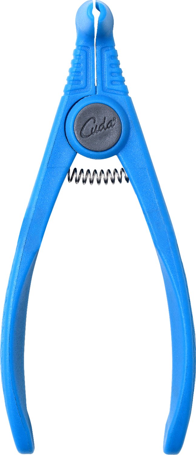 Wacky rigging is easy with the Cuda 5 in Wacky Rigging Pliers. These corrosion-resistant pliers are easy to use and are durable enough to withstand rough conditions. The pliers are designed with 3 notches to fit various-sized rings. Place the desired ring on a notch, and squeeze the handles to open the ring. Place the worm through the ring to the desired position, and release and remove.