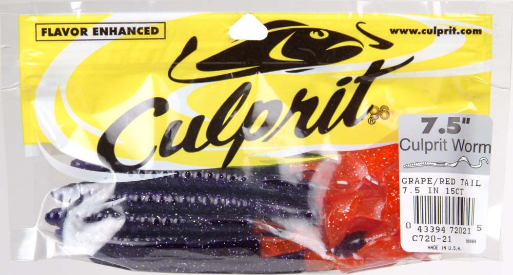 Catch your next big bass with the Culprit 7-1/2" Worms 18-Pack. These worms feature kicking tails to help draw bass to your line.