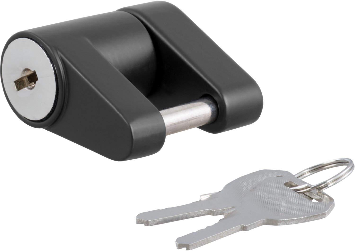 Add security to your trailer and towing equipment with the CURT .875 in Span Coupler Lock. This coupler lock features a padlock design with a hardened steel locking pin for reliable security. It has a .25 inch pin that fits latch-type couplers with a max span of .75 inches.
