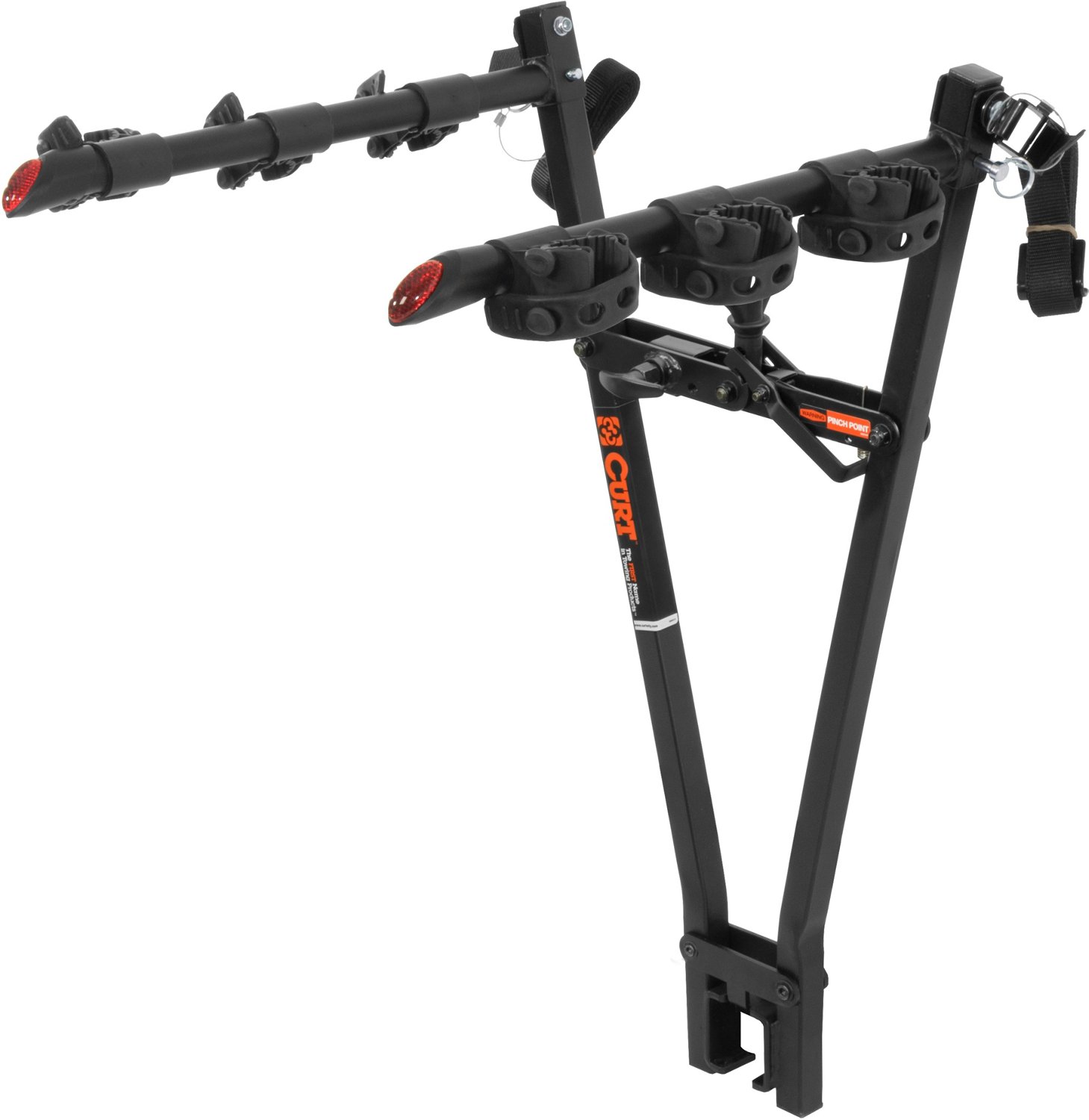 The CURT Clamp-On 3-Bike Rack will safely hold up to 3 of your bikes at once. The rubber cradles prevent damage to your bike frames, and the safety latch helps make installation/removal safer.