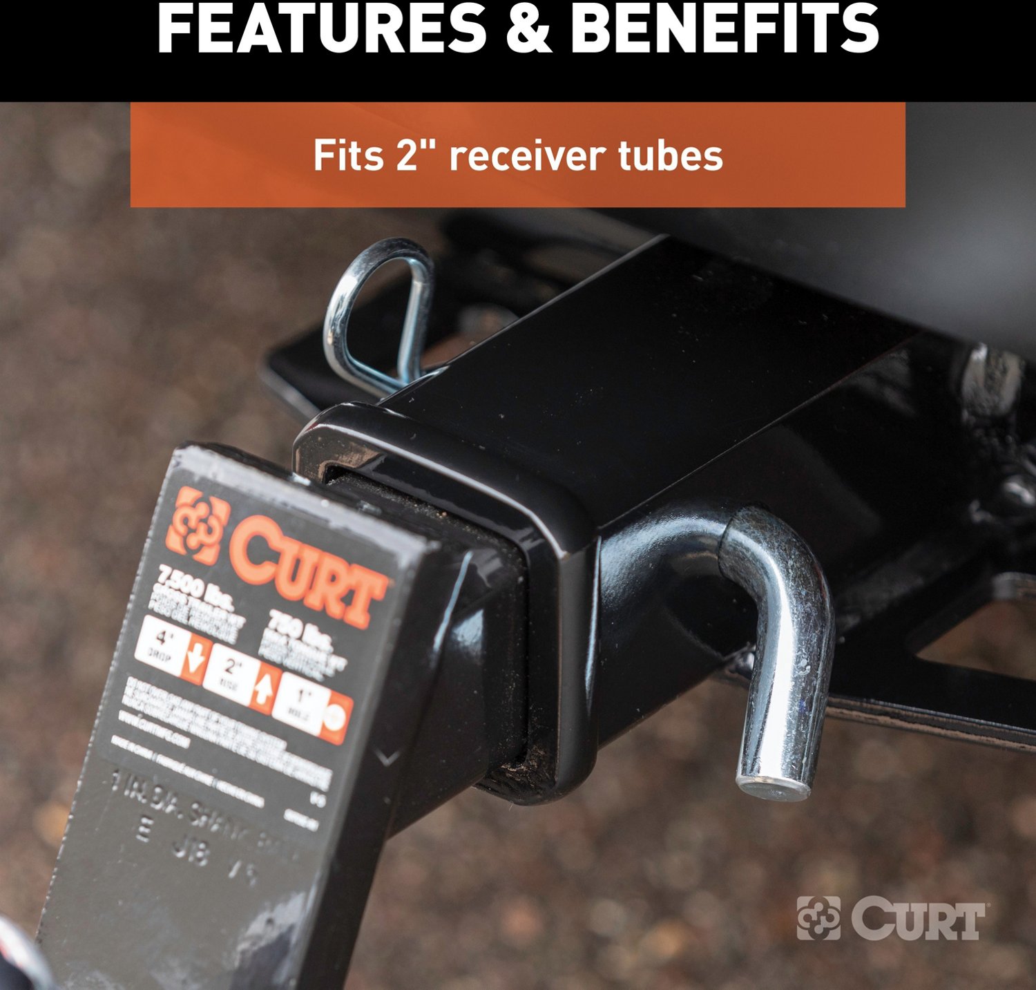 5/8-inch diameter pin fits 2-inch by 2-inch receiver tubes