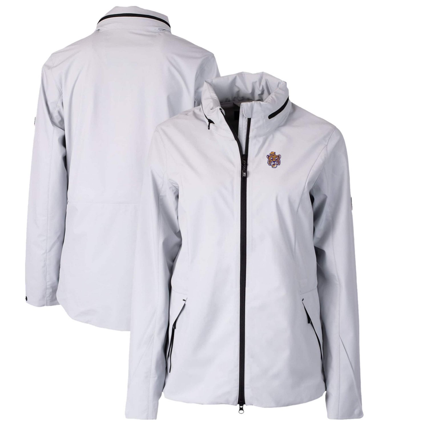 Stay dry and show your LSU Tigers spirit with the Cutter Buck Vault Vapor Water Repellent Stretch Full-Zip Rain Jacket This lightweight LSU Tigers jacket is perfect for mild temperatures featuring a water- and wind-resistant finish to keep you comfortable in any condition The embroidered graphics and matte fabric finish give it a stylish look while the adjustable snap cuff and concealed hood provide added functionality Whether you're cheering on the Tigers at Death Valley or just out and about this jacket will keep you comfortable and stylish