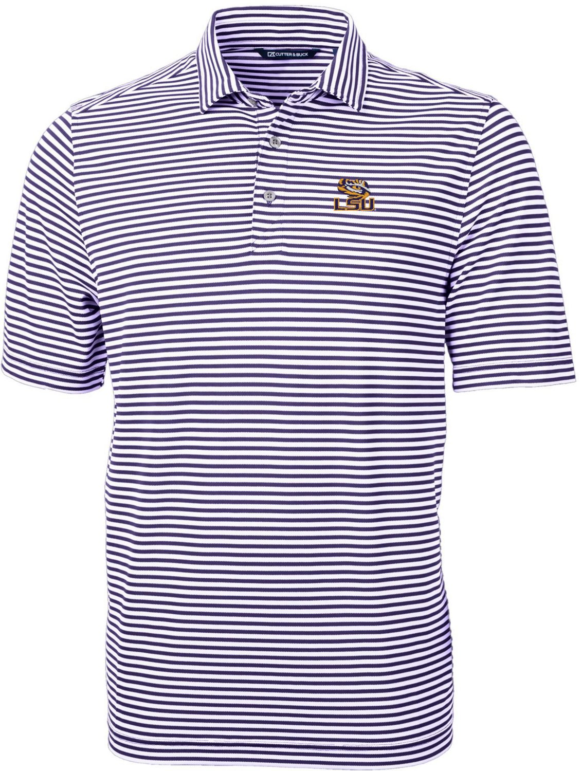 Embrace the spirit of the LSU Tigers with the Men's Cutter Buck Gray LSU Tigers Virtue Eco Pique Stripe Recycled Polo Crafted from recycled polyester this eco-friendly polo boasts an average of seven recycled plastic bottles contributing to a sustainable lifestyle Embroidered LSU Tigers graphics proudly display your unwavering support while the three-button placket ensures a secure fit Whether you're cheering on the sidelines or simply showing your team spirit this polo seamlessly blends style and sustainability making it the perfect choice for any LSU Tigers enthusiast