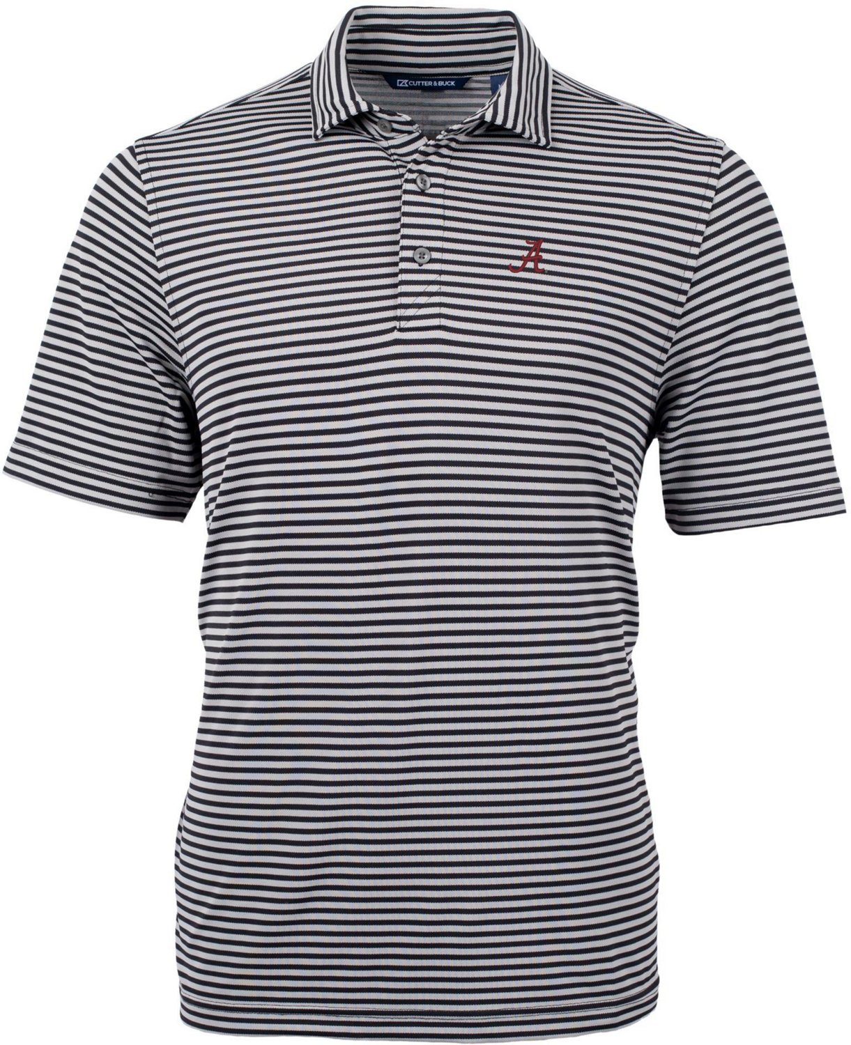 The Men's Cutter Buck Gray Alabama Crimson Tide Virtue Eco Pique Stripe Recycled Polo is a sustainable choice for the eco-conscious Alabama Crimson Tide fan Crafted from recycled plastic bottles this polo boasts a comfortable and breathable recycled polyester polyester and spandex pique fabric Its embroidered graphics and three-button placket add a touch of sophistication while its DryTec 25 UPF technology ensures protection from the sun's harmful rays Whether you're cheering on the Crimson Tide from the stands or simply showing your support this polo is a stylish and responsible way to represent your team