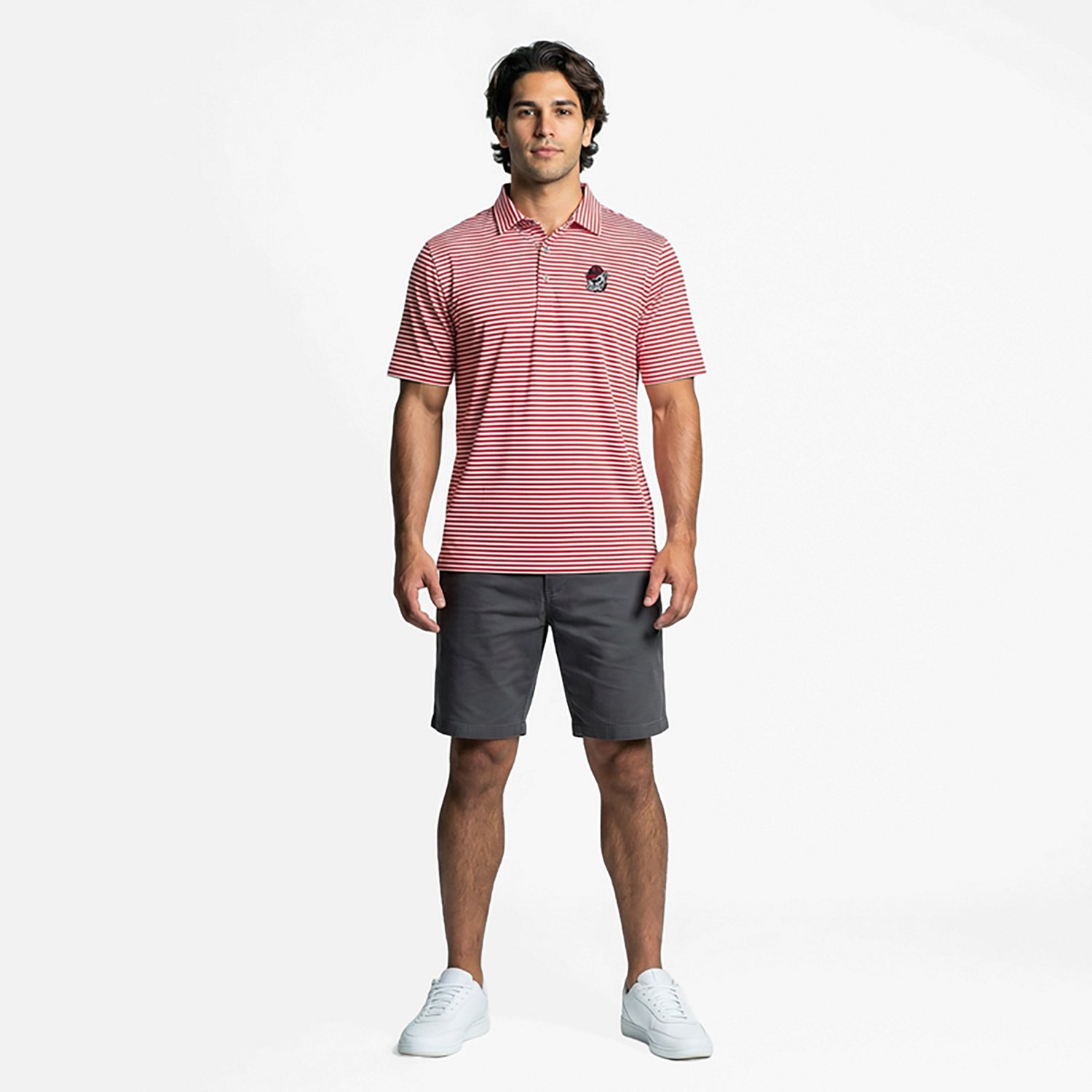 Embrace the spirit of the Georgia Bulldogs with the Men's Cutter Buck Red Georgia Bulldogs Virtue Eco Pique Stripe Recycled Polo Crafted from recycled polyester this eco-friendly polo boasts embroidered graphics that proudly display your unwavering support for the Bulldogs Its self-fabric collar and three-button placket ensure a comfortable and classic fit while the DryTec 25 UPF technology keeps you protected from the sun's harmful rays Whether you're cheering on the team at Sanford Stadium or simply showing your Bulldog pride this polo is the perfect way to represent your unwavering loyalty