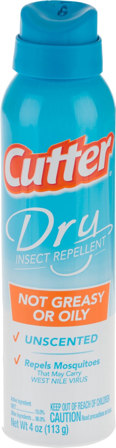 Enjoy the great outdoors with the Cutter Dry 4 oz. Insect Repellent. Containing 10% DEET, this nongreasy, nonoily repellent keeps mosquitoes and other biting insects away. Made in USA.