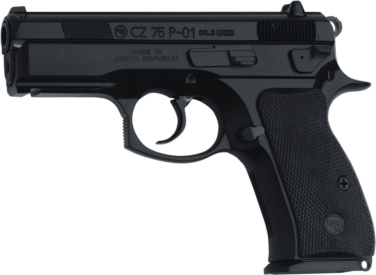 The CZ 75 P-01 9mm Luger Pistol can also function as a concealed-carry handgun thanks to its compact design. The 14-round, single/double-action pistol boasts a cold-hammer forged barrel, an aluminum frame and a matte finish. It also has fixed sights and an integrated rail on the dust cover.