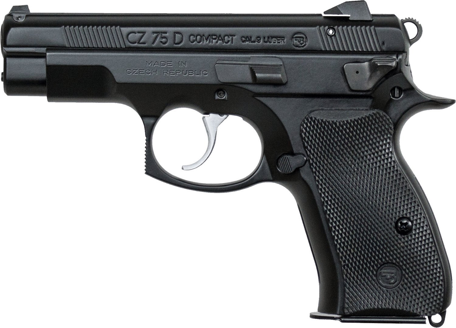 Compact and lightweight, the CZ 75 PCR 9mm Luger Pistol is great for concealed carrying. It features a 3.75-inch cold-hammer forged barrel, an aluminum frame, a snag-free, fixed 3-dot sight and a rubber grip. Thanks to the longer, heavier trigger pull, the initial round requires more effort than subsequent rounds, so there's no need to flip off a safety lever.
