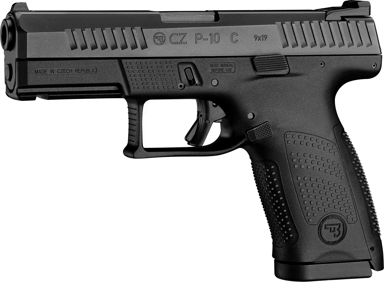 Introducing the CZ P-10 C 9mm Luger Pistol. With a magazine capacity of 15+1 rounds and a double-action-only (DAO) action, this pistol offers seamless functionality. The CZ P-10 C comes equipped with fixed sights and a serrated black nitride steel slide. Crafted with a polymer frame featuring a Picatinny rail, along with interchangeable black backstrap grips, this pistol provides customizable comfort and control. Measuring 7.30 inches in overall length, 5.20 inches in height, and 1.26 inches in width, with a barrel length of 4.02 inches, and weighing 26 ounces, it strikes the perfect balance between compactness and power. Each purchase includes one magazine. Safety is paramount with its firing pin/trigger block mechanism.