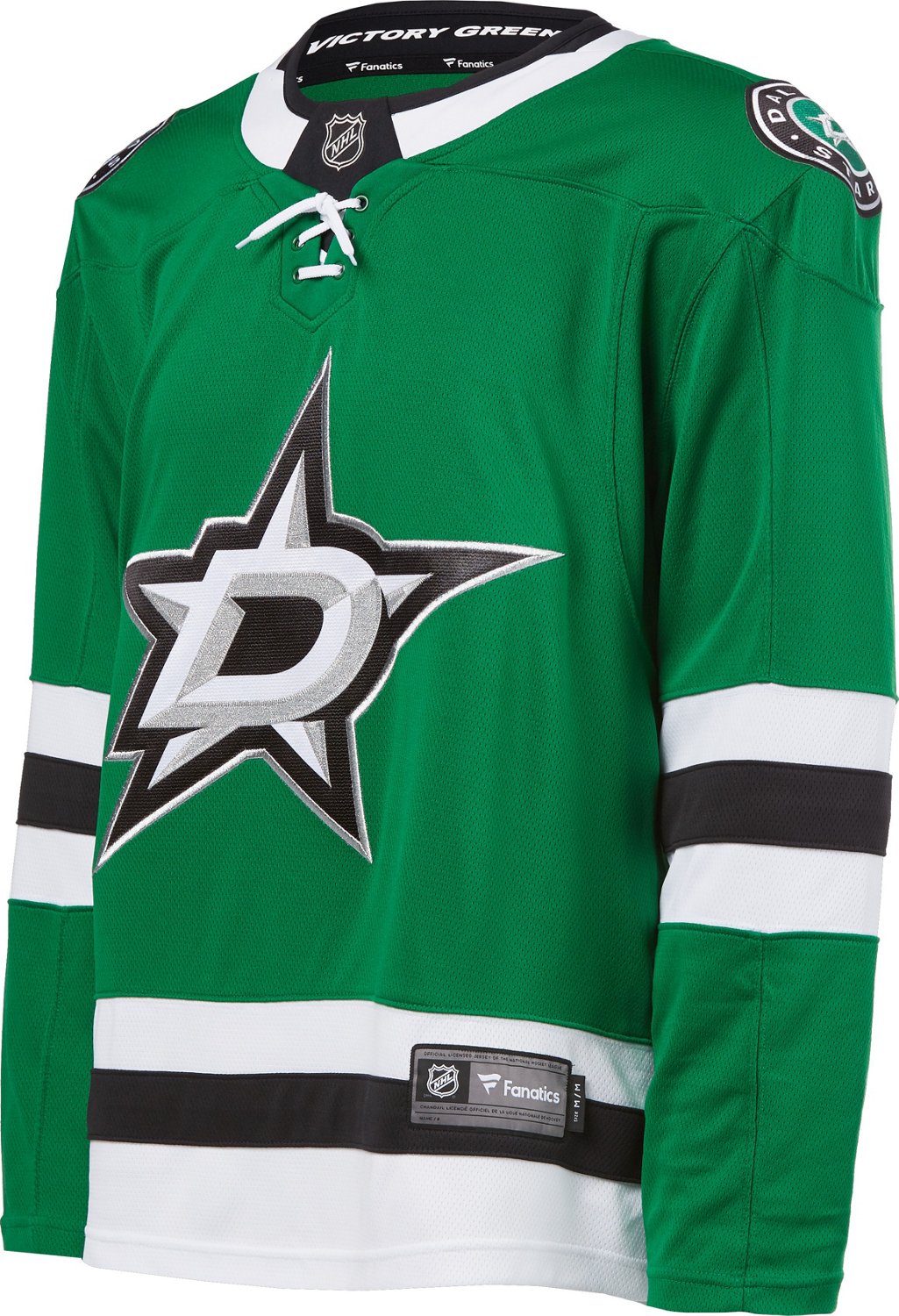 Showcase your Stars pride at the next home game with the Dallas Stars Men's Breakaway Home Jersey. This jersey is designed to give an authentic on the ice look, and the team graphics leave no doubt that you're a true fan through thick and thin. For more NHL gear, check out the Academy.com Fan Shop.