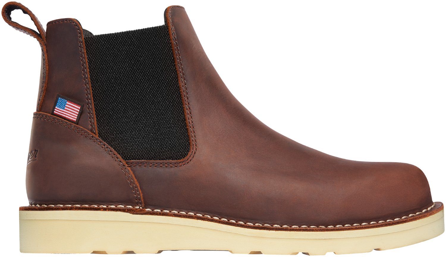 Get to work with the Danner Men's Bull Run Work Boots. The full-grain leather uppers afford durability, while the open-cell OrthoLite footbeds provide cushioned comfort. The wedge outsoles are nonmarking, oil and slip resistant for traction, and the Chelsea construction allows for easy on/off.