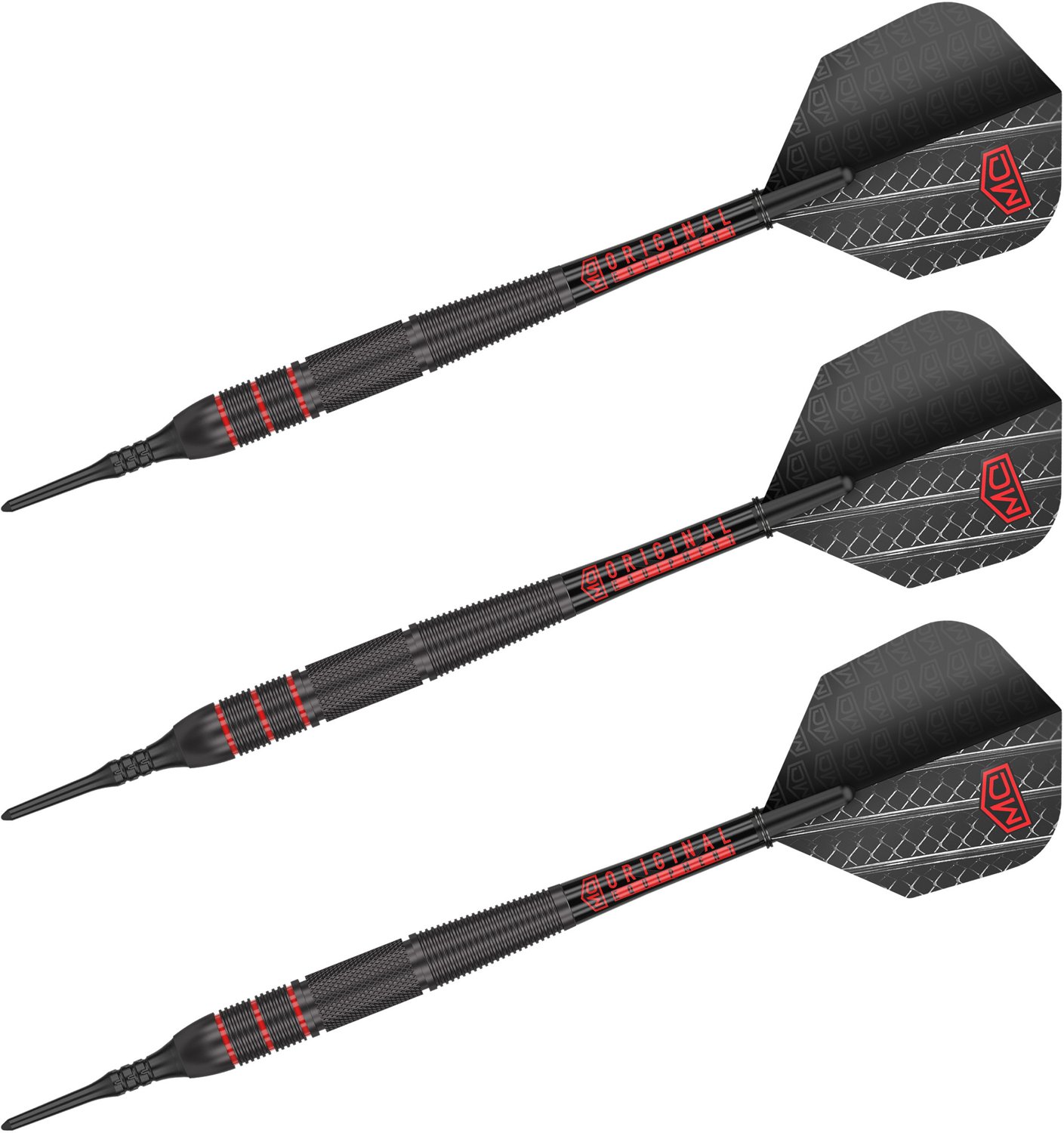 The Dart World Charger 20 g Soft Tip Dart Set is great for beginning to intermediate dart players. The barrels are knurled with fine microgroove cuts and have a PVD Black Titanium Nitride coating to provide a comfortable, grippy feel. Meanwhile, the coated steel construction resists wear and tear throw after throw. A colorful design mimics the looks of the hey-day American muscle cars to highlight an eye-catching appearance.
