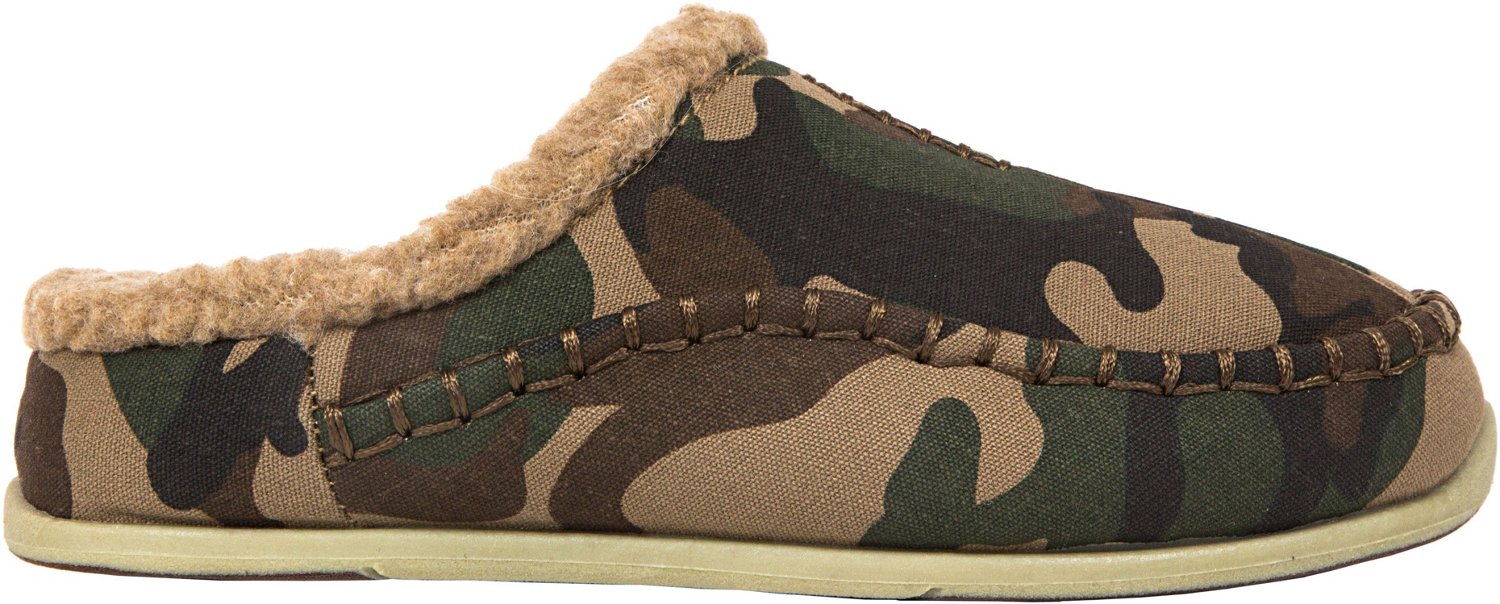 Soft, canvas-twill upper with camouflage print stitched in a moccasin-clog style