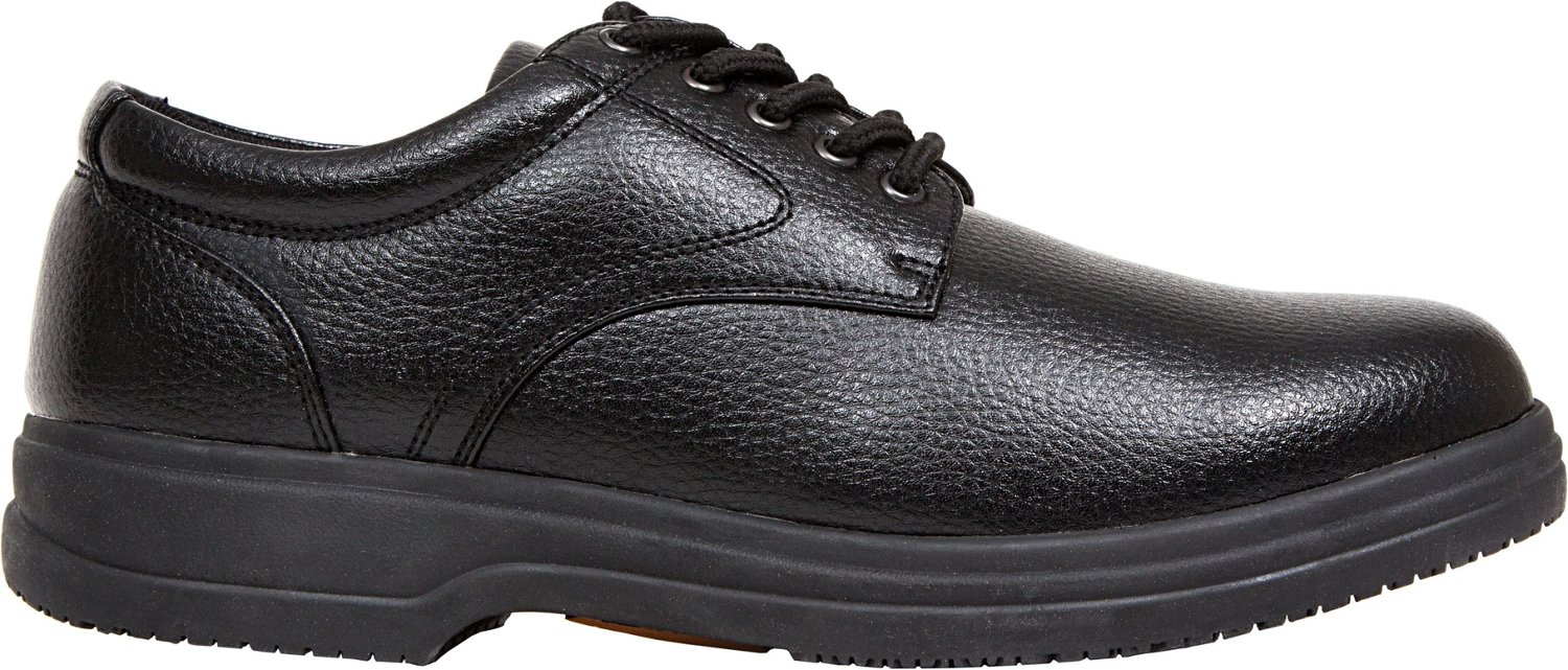 Get the job done with the De Deer Stags Men's Service Nonmarking Dress Shoes. Constructed with synthetic uppers, these shoes are easy-to-clean for convenience, while the memory foam insoles provide comfort. The nonmarking rubber outsoles are slip- and oil-resistant for traction, and the moisture-wicking technology helps keep your feet cool and dry.