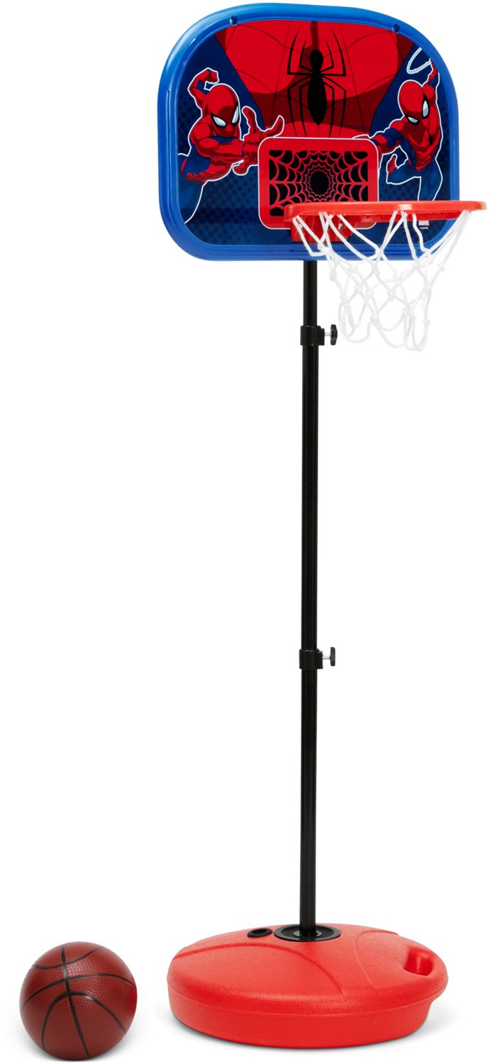 Get kids playing with the Delta Children Spiderman Basketball Hoop. Designed for little ones ages 3 years and up, this plastic basketball hoop has Spiderman graphics to draw kids in and is height adjustable from 3.5 to 4.2 feet to accommodate growing little ones. The durable material withstands outdoor use and is light and small enough to bring indoors. An air pump and basketball are included for ready-to-play fun.
