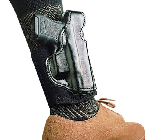 Designed with a neoprene leg band with foam padding and a sheepskin lining, the DeSantis Gunhide® Die Hard S&W Bodyguard 380 Ankle Rig Holster offers comfortable, concealed carry of your pistol. This holster features top-grain saddle leather construction with a smooth leather lining to help protect the gun's finish.