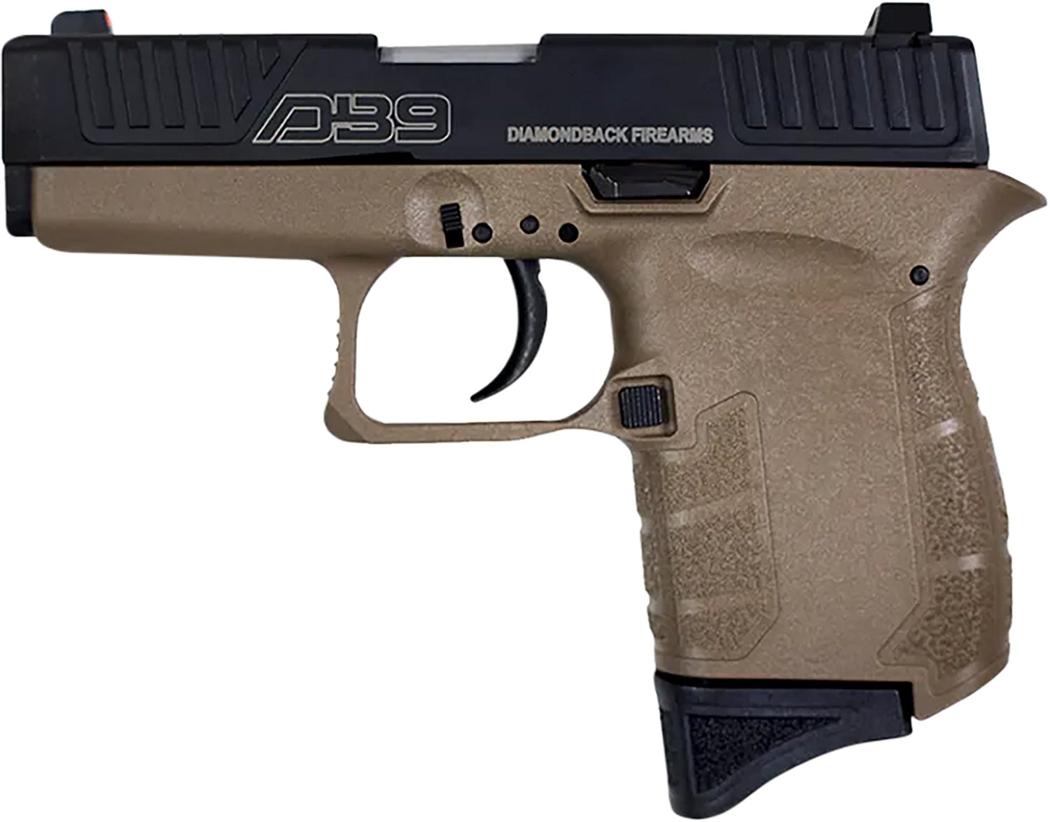 The Diamondback D89 Gen4 9mm Pistol is double action and has a 6-round capacity. It's built with a stainless-steel barrel, a serrated stainless-steel slide and a polymer frame. An FDE polymer grip, 3-dot contrast sights and a firing pin safety complete the design.