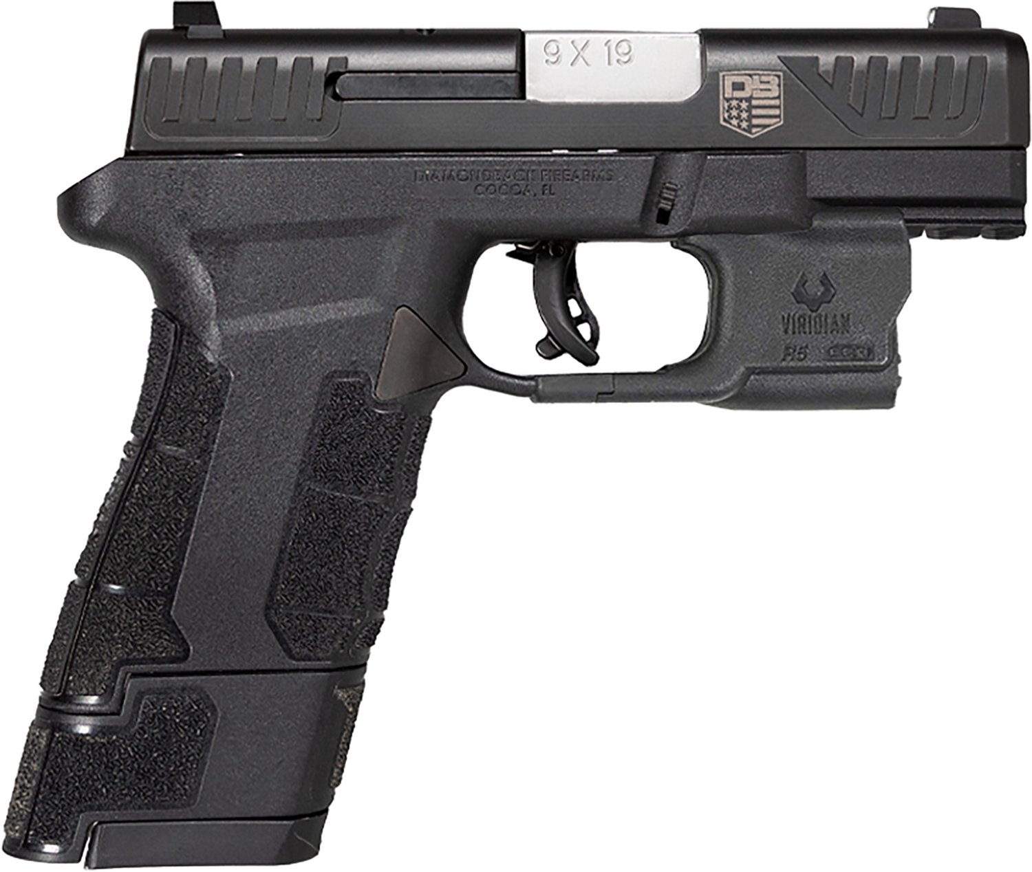 The Diamondback DBAM29 9mm Pistol has a 3.5-inch stainless-steel barrel with a 17+1-round capacity and a nitride finish. This optics-ready firearm has a polymer frame with a Picatinny rail, a serrated stainless-steel slide and contrast 3-dot sights in the front and rear. This sub-compact pistol also features a firing pin safety and a polymer grip.