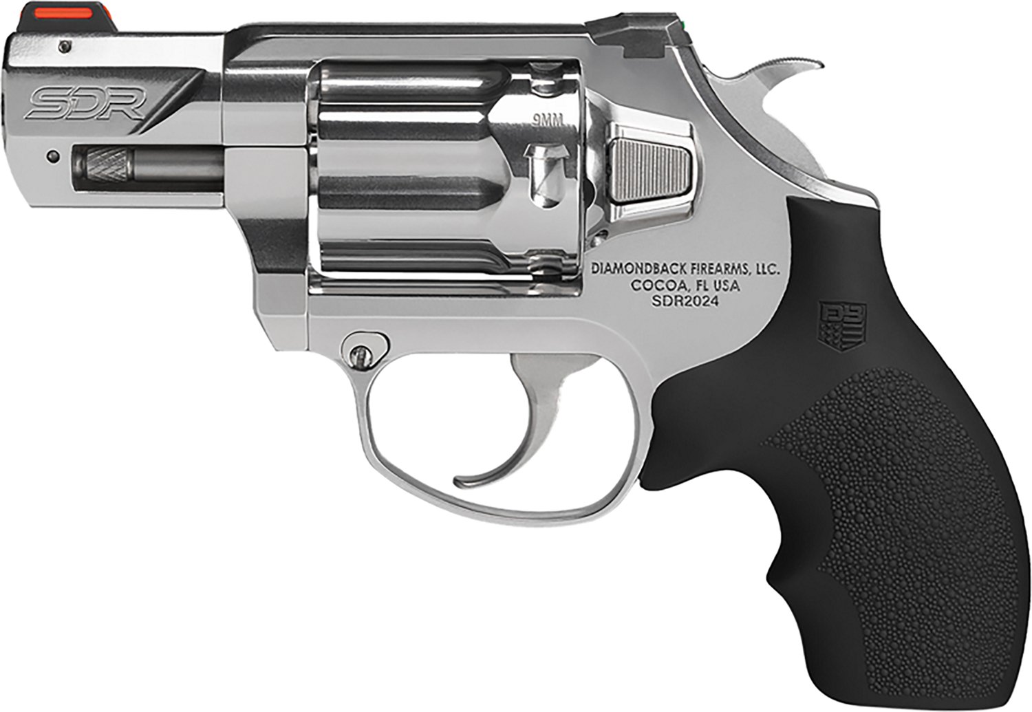 Be prepared with the Diamondback Firearms SDR 9mm Single/Double Action Revolver. The steel frame has a black finish, and the black rubber grip have a Diamondback DB logo.