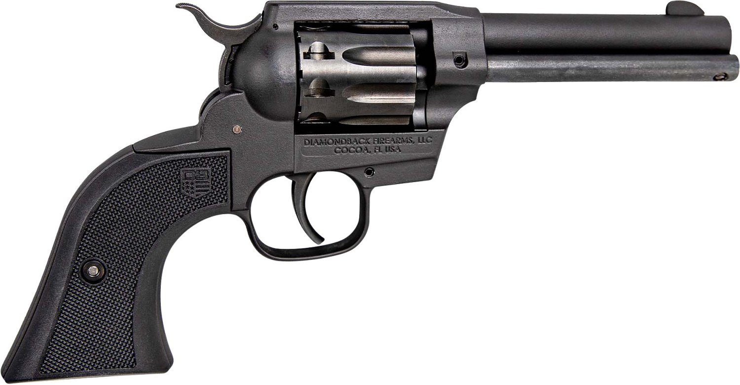 The Diamondback Sidekick Barrel .22 LR/.22 WMR Revolver has a zinc alloy frame and a 4.5-inch barrel. It also has a double action with a 9-round capacity and an exposed hammer safety.