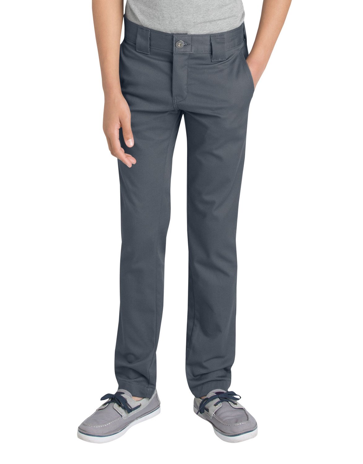You want to be comfortable from the first bell to after-school activities. But you want to look cool, too. The Dickies Boys' Flex Skinny Fit Straight Leg Uniform Pant lets you move easily throughout your day with flex fabric that features easy-care stain release, so spills are easier to clean.