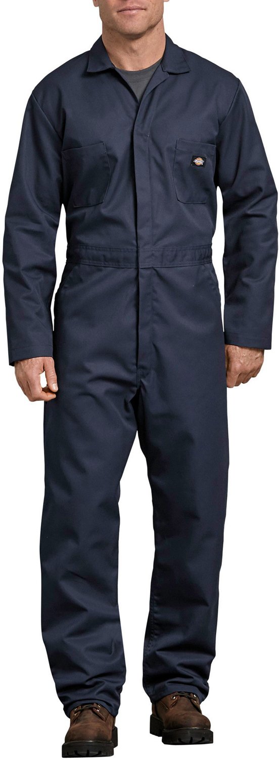 Be ready to work hard in the Dickies Men's Basic Blended Coveralls. These long-sleeve coveralls are constructed of a polyester-and-cotton blend twill that is both durable and breathable, and which stands up to wrinkles, fading and stains. Two pockets in front, two in the back, plus a tool pocket on the right leg mean you'll have everything you need. A spacious fit in the shoulders and chest, plus a bi-swing back provide flexibility and mobility.