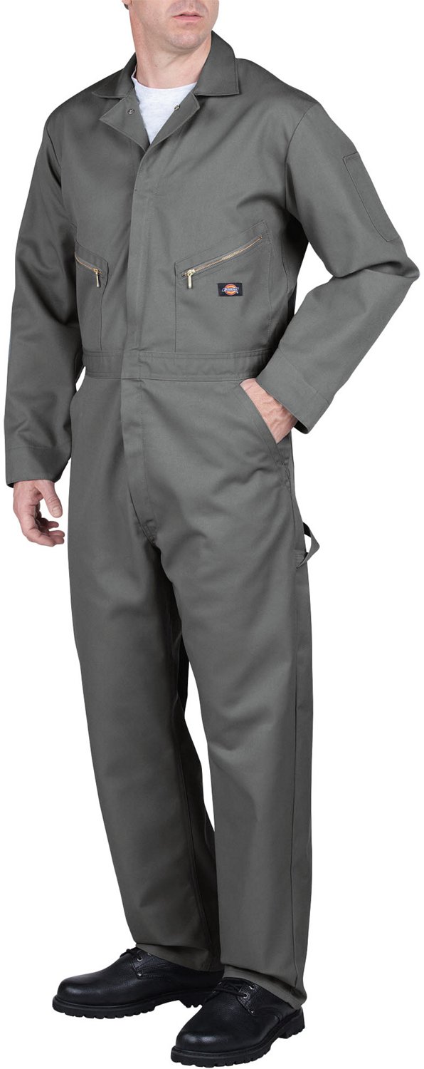 Keep your clothes protected while at the jobsite with help from the Dickies Men's Blended Deluxe Coverall. Made of 65% polyester and 35% cotton twill for comfortable wear with stain-release fabric technology that offers easy care. This long-sleeve coverall features a 2-way zipper closure with concealed snaps at the waist, neck and faced cuffs for easy on and off. Multiple pockets, including 2 zippered chest pockets, a zippered back pocket, a rule pocket and a hammer loop.