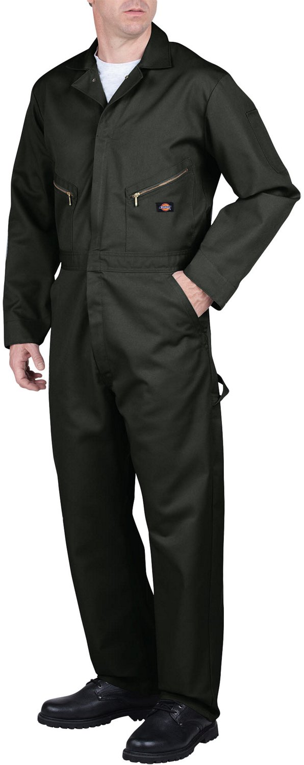 Keep your clothes protected while at the jobsite with help from the Dickies Men's Blended Deluxe Coverall. Made of 65% polyester and 35% cotton twill for comfortable wear with stain-release fabric technology that offers easy care. This long-sleeve coverall features a 2-way zipper closure with concealed snaps at the waist, neck and faced cuffs for easy on and off. Multiple pockets, including 2 zippered chest pockets, a zippered back pocket, a rule pocket and a hammer loop.