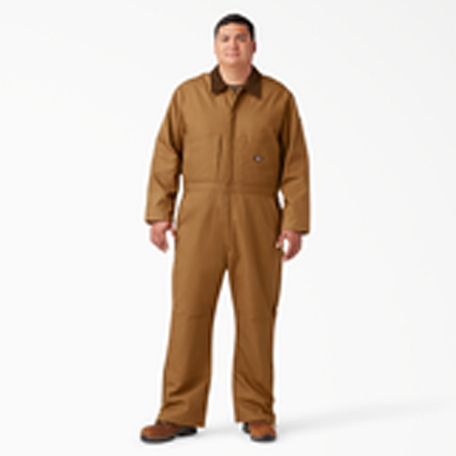 Great for staying warm and protected on the job, the Dickies Men's Duck Insulated Coverall is made of water-repellent 100% cotton duck for dry, comfortable wear. ScuffGard® fabric technology and double knees help ensure durability, and the coverall features long sleeves with knit storm cuffs. A heavy-duty, 2-way front zipper closure zips to the waist for easy on and off. Side-entry, zippered chest pockets, a left back pocket and an interior pocket.