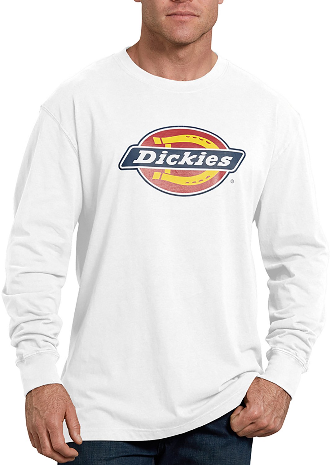 Great as an extra layer on cooler days, the Dickies Men's Icon Graphic Long Sleeve T-shirt displays a bold Dickies graphic on the front that shows off your style. The cotton jersey and tagless label lend a soft, comfortable feel.