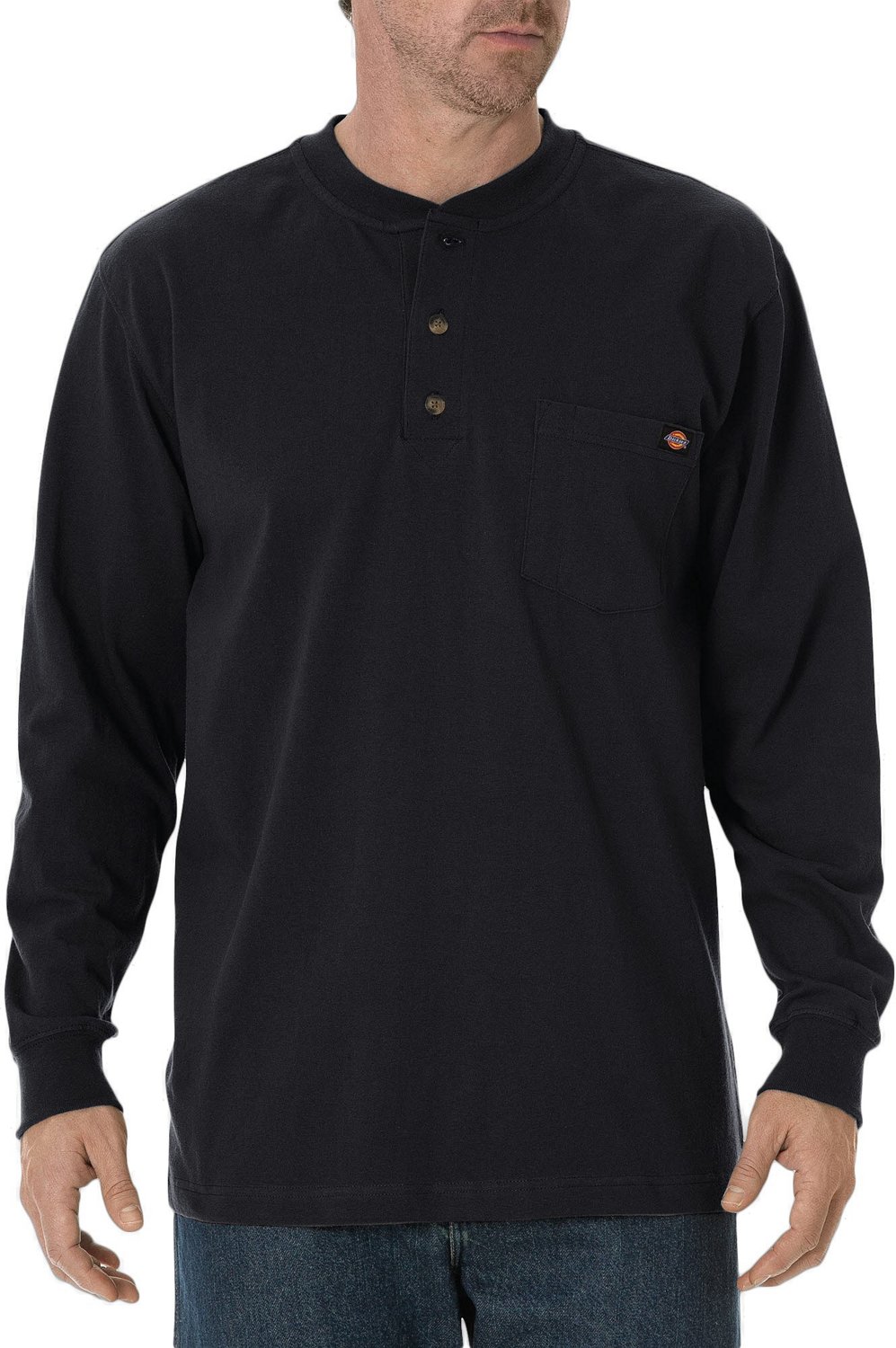 The Dickies Men's Long Sleeve Heavyweight Henley is made of comfortable, heavyweight 100% jersey-knit cotton and features a taped neck and shoulder seams for durability. This henley features a 2-button closure and a tagless back neck for comfort. Left-chest pocket with a Dickies logo.