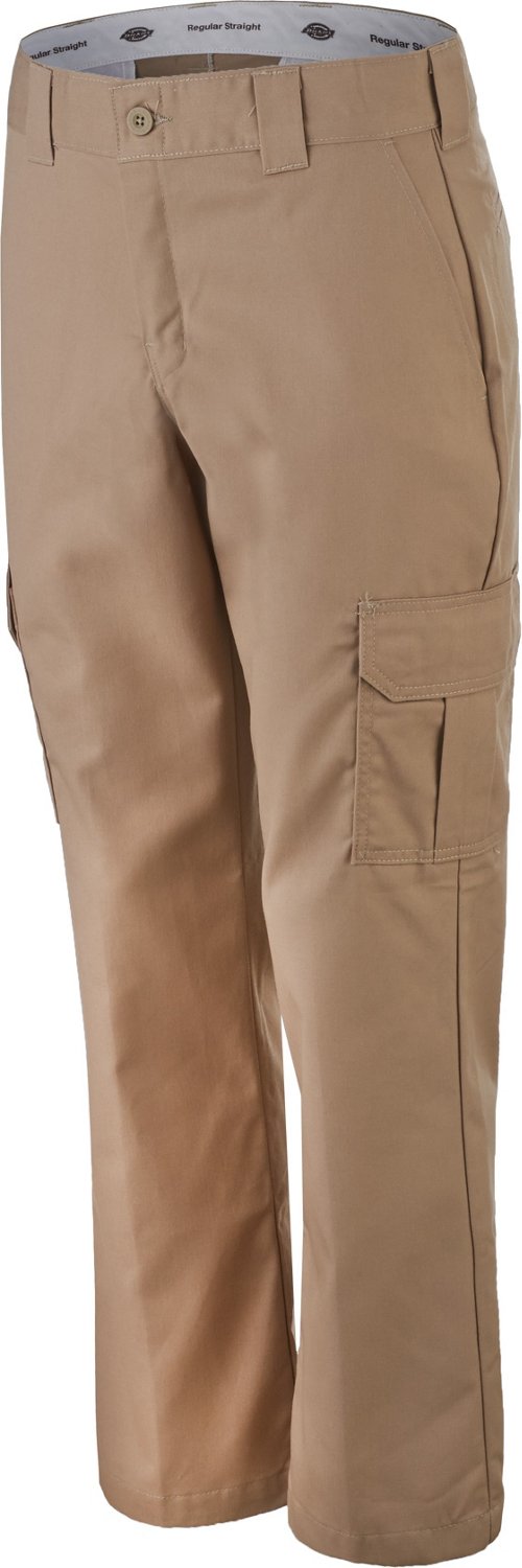 Great for your casual lifestyle, the Dickies Men's Regular Fit Straight Leg Cargo Pant is made of moisture-wicking, wrinkle-resistant 65% polyester and 35% cotton stretch twill for ease of movement and dry, comfortable wear. Stain-release technology offers easy care. 2 hand pockets and 2 expandable cargo-style pockets. Sits slightly below the waist.
