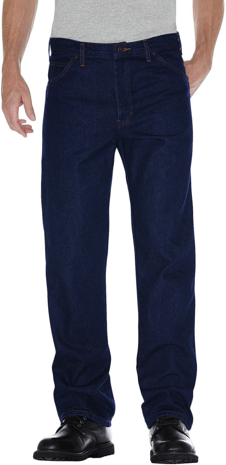 The Dickies Men's Regular Straight Fit 5-Pocket Denim Jean offers durability with its heavy-duty denim fabric, rigid construction, a heavy-duty brass zipper and rivets at all points of stress for reinforcement. Traditional fit silhouette for a classic look. 5-pocket design.