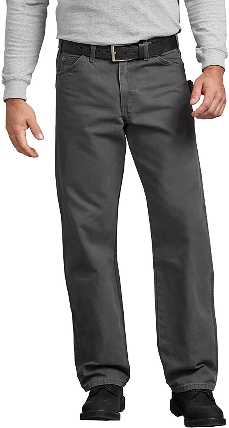 Great for work or casual wear, the Dickies Men's Relaxed Fit Straight Leg Carpenter Duck Jean is made of 100% cotton sanded duck for soft, comfortable wear and features a dual tool pocket and hammer and utility loops. Button closure with a heavy-duty brass zipper fly. Fits over work boots.