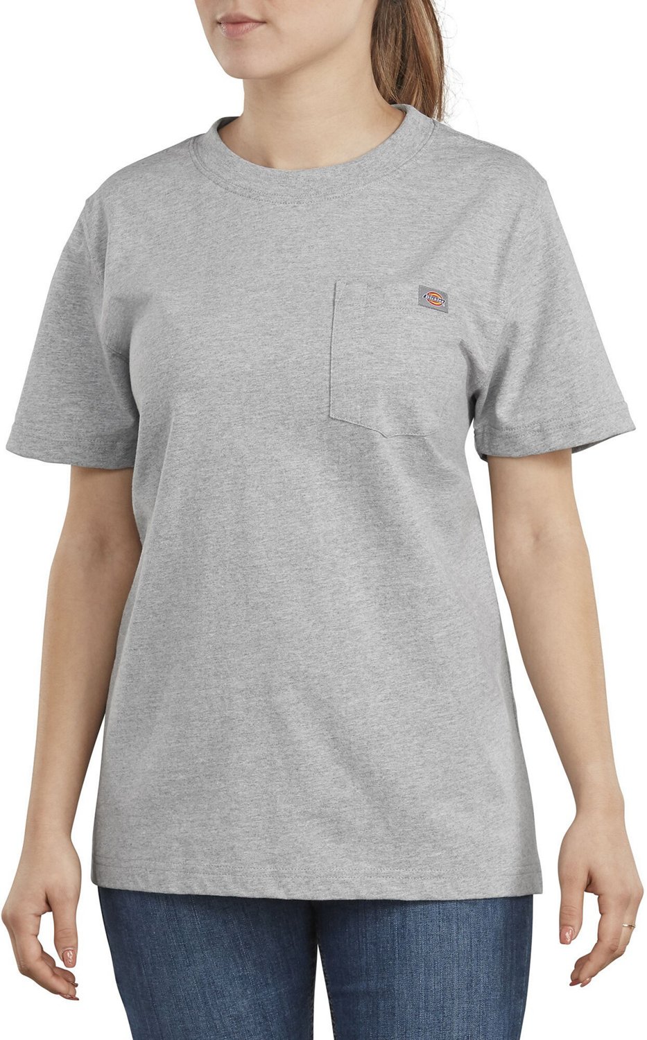 Get some work done around the house or run some errands with the Dickies Women's Heavyweight Pocket T-shirt. Comprised of 100% cotton and a heavyweight construction, this short-sleeve T-shirt offers durable performance and comfortable wear. The chest pocket ensures you have the essentials close at hand. Crew neck.