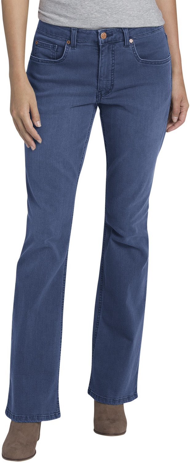 Stay stylish and comfortable in the Dickies Women's Perfect Shape Bootcut Stretch Denim Jeans. Comprised of a Flex tummy panel and Cone S-Gene® technology, these bootcut jeans deliver ideal stretch and recovery performance that help you look great throughout the day. The 89% cotton, 8% polyester and 3% spandex construction delivers an ultrasoft and lightweight feel.