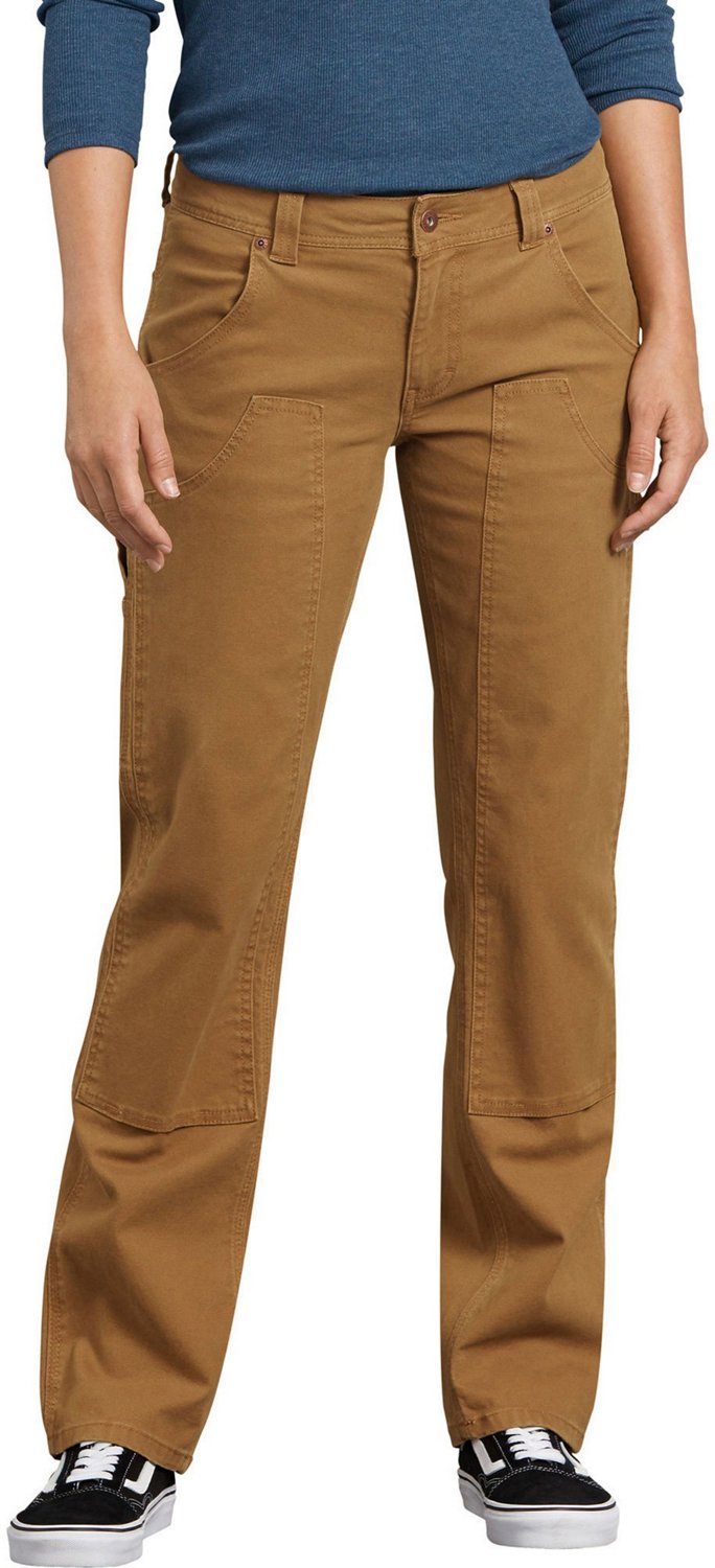 Gear up for another work day with the Dickies Women's Relaxed Denim Duck Washed Stretch Carpenter Pants. Made with 98% cotton and 2% spandex, these carpenter pants boast soft, flexible performance. The contoured waistband features a stretch lining for a great fit, while the pockets and hammer loop allow you to keep the essentials close at hand. Knee pad openings on the front help ensure utility when you need it. Relaxed fit.