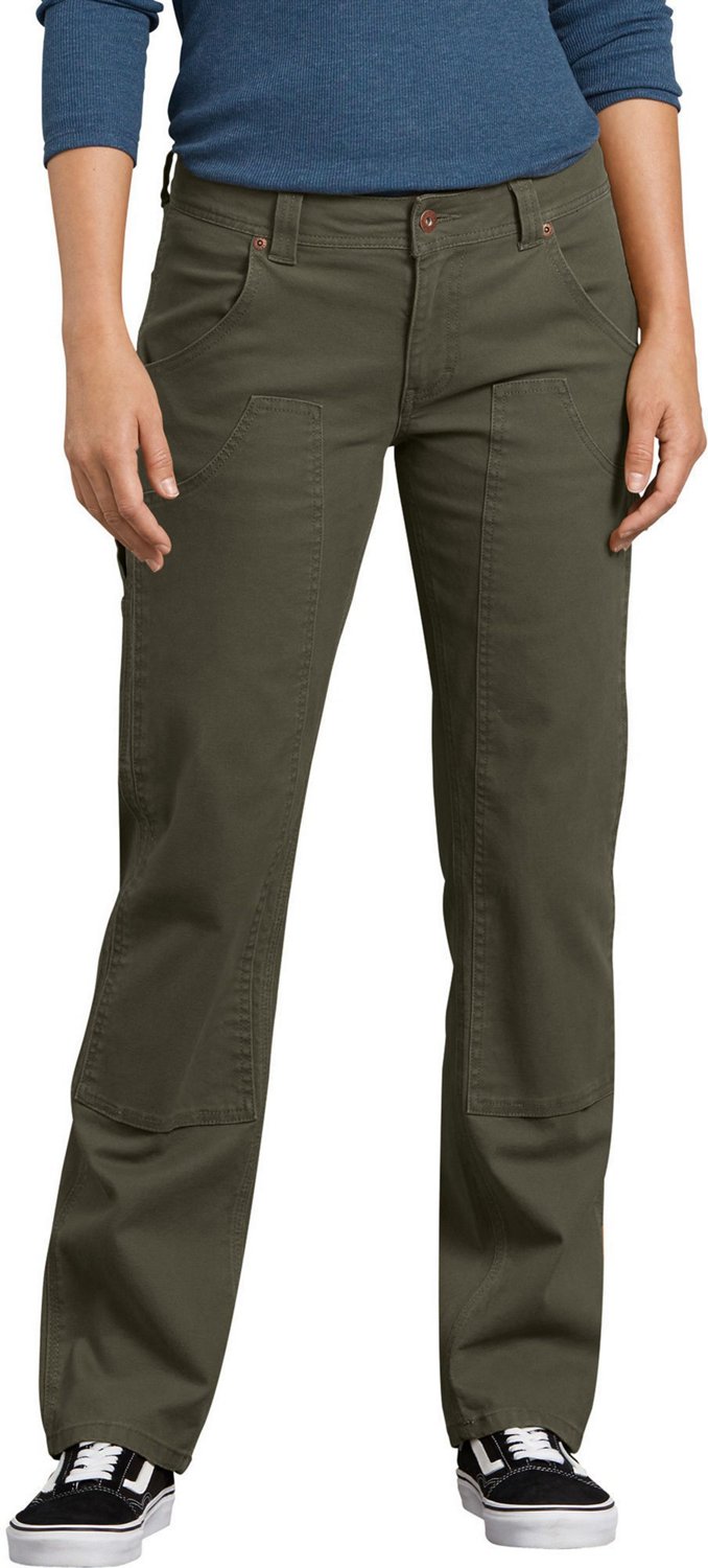 Gear up for another work day with the Dickies Women's Relaxed Denim Duck Washed Stretch Carpenter Pants. Made with 98% cotton and 2% spandex, these carpenter pants boast soft, flexible performance. The contoured waistband features a stretch lining for a great fit, while the pockets and hammer loop allow you to keep the essentials close at hand. Knee pad openings on the front help ensure utility when you need it. Relaxed fit.