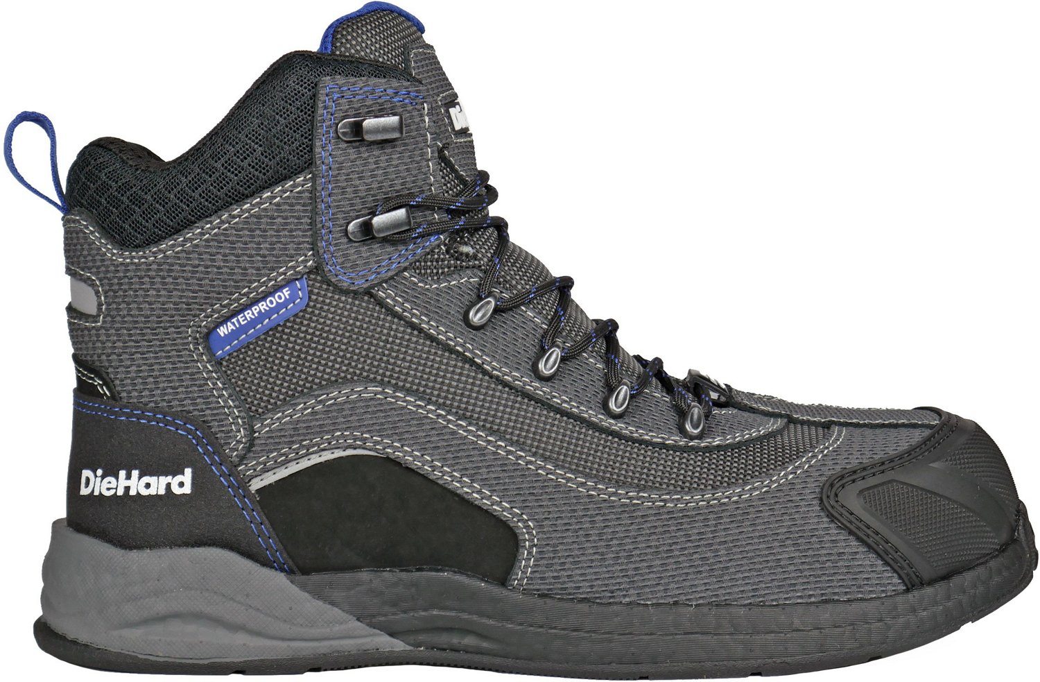 Protect your feet on the job with DieHard Footwear Men's Lemans Composite Safety Toe Hiker Work Boots. The soft yet sturdy leather uppers feature waterproof membranes and moisture-wicking mesh to keep boot interiors dry. Removeable insoles and rebound cushioning provide comfort and shock absorption, while slip-resistant outsoles offer reliable traction. Meets ASTM F2413-18 standards for electrical hazard protection.