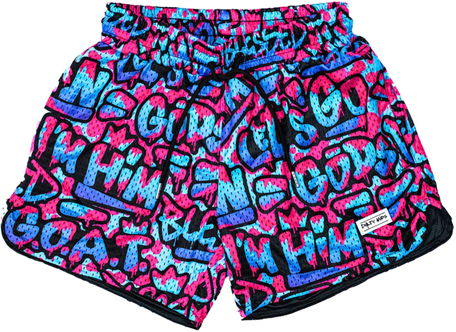 Whether you're hitting the gym for a day of training or just hanging out at home with friends, these Dirty Mids Men's MVRK Shorts 5 in. provide the ideal balance of comfort and style. Made of a polyester-elastane blend and featuring soft, double-layer mesh, they offer a pleasant feel all day long, and their all-over MVRK print and raised rubber 3D logos are sure to capture attention.