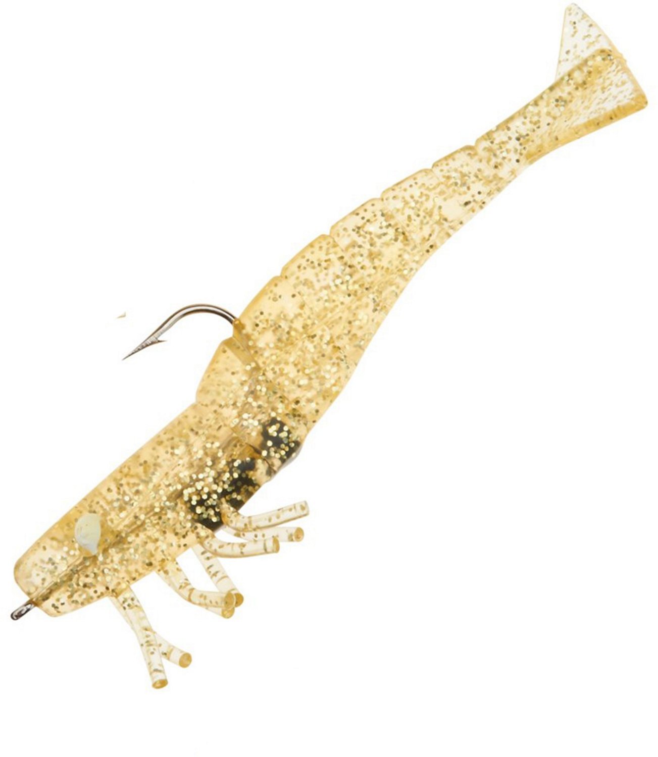 Features and Benefits Rigged plastic shrimp with glow eyes Lead material Keel-weighted hook helps keep the shrimp upright 2.75 inches long Made in USA Specifications Product Type: Baits + Lures Saltwater Suitable: Yes Body Length (in.): 2.75 Activity: Fishing Material: Plastic, Lead Suitable Water Type: Saltwater Product length: 2.75 Intended use: Saltwater What's in the Box D.O.A. Fishing Lures 2.75 in Shrimp Baits 3-Pack