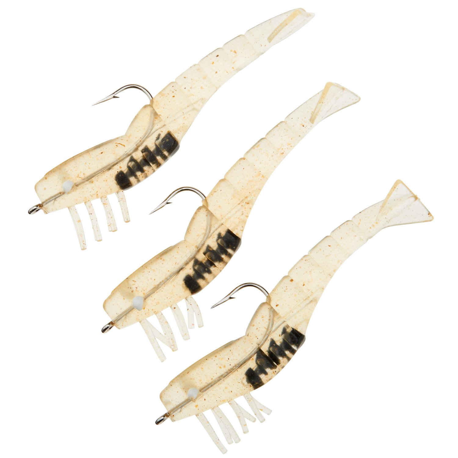 The D.O.A. Fishing Lures 3-1/2" Standard Shrimp Rigged Plastic Swimbaits 3-Pack are stuffed with real shrimp to make them irresistible to freshwater and saltwater fish. The baits are each rigged with a weedless single hook and feature a realistic shrimp design. 1/4 oz. Hook size: 4/0. Made in USA.