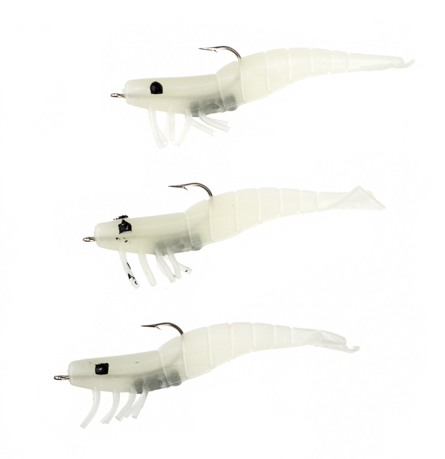 The D.O.A. Fishing Lures 3" Standard Shrimp Rigged Plastic Swimbaits 3-Pack are stuffed with real shrimp to make them irresistible to freshwater and saltwater fish. The baits are each rigged with a sharp hook and feature a realistic shrimp design. 1/4 oz. Hook size: 3/0. Made in USA.