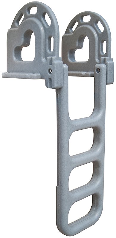 Roto-molded ladder swings up and out of the way, locking in place when not in use to save space
