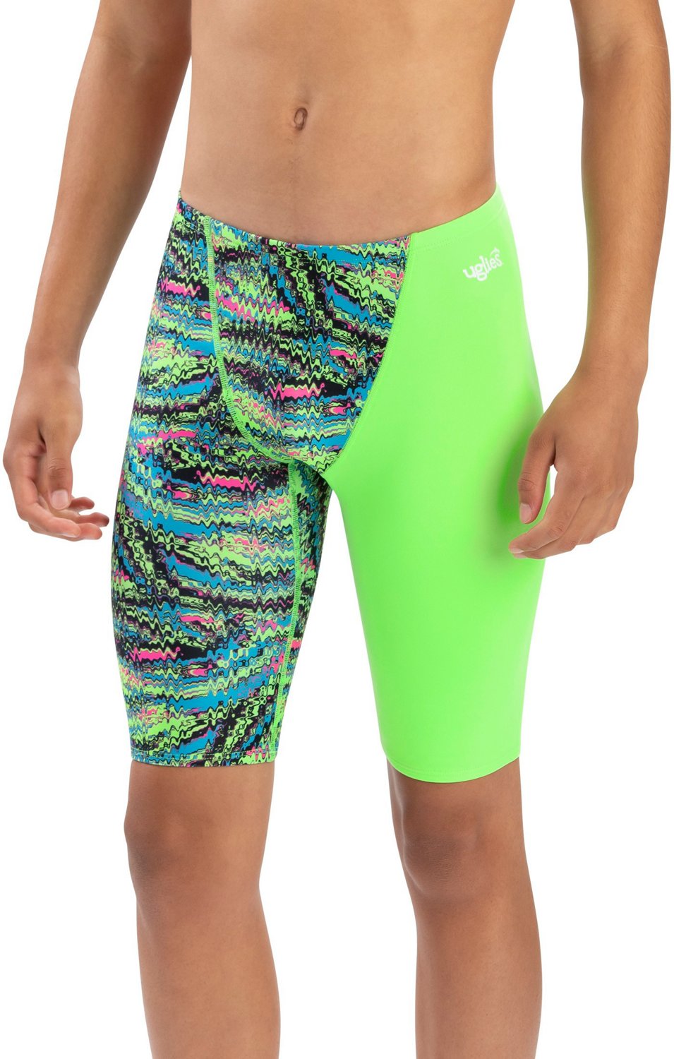 Swim comfortably wearing the Dolfin Men’s Uglies Print Swim Jammer. The waistband has a drawstring so you can loosen or tighten the fit, and the chlorine resistance adds durability.
