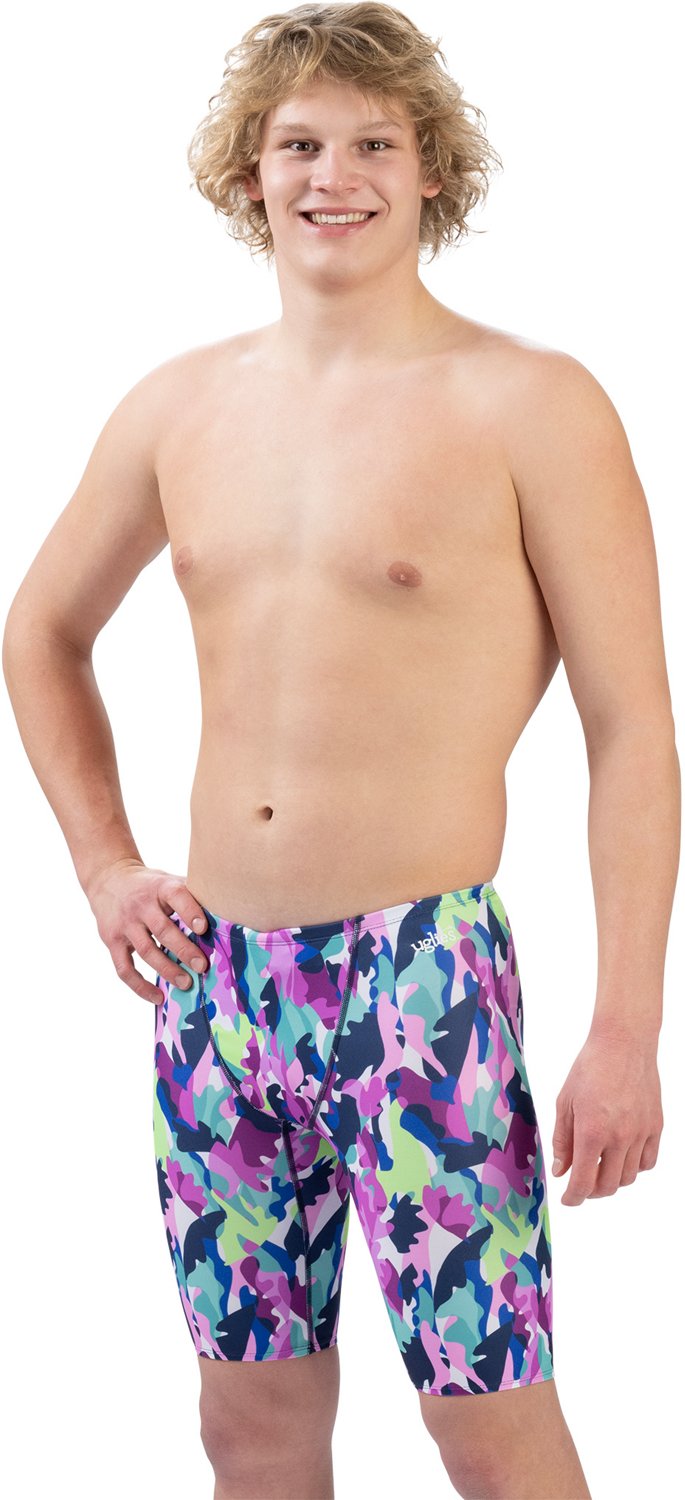 Boost your swimming performance with the Dolfin Uglies Men's Print Jammer Hideout. Its bold design and chlorine-resistant fabric make it perfect for competitive training or casual swims. With UPF 50+ protection, this jammer is as versatile as it is stylish.